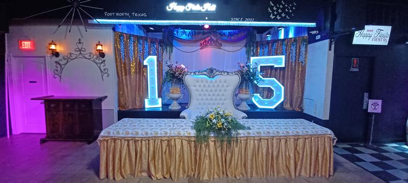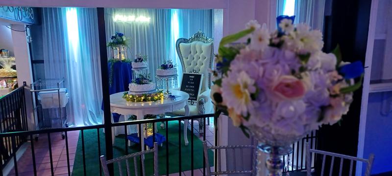 -GRATIS Decoración de Mesa principal: (No Aplica para todas las decoraciones): Columnas, cortinas, floreros, Sillón(es), luces, velas, mesa del pastel, brindis y firmas